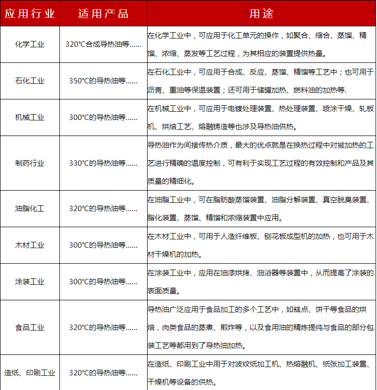 不同的合成導(dǎo)熱油的應(yīng)用范圍